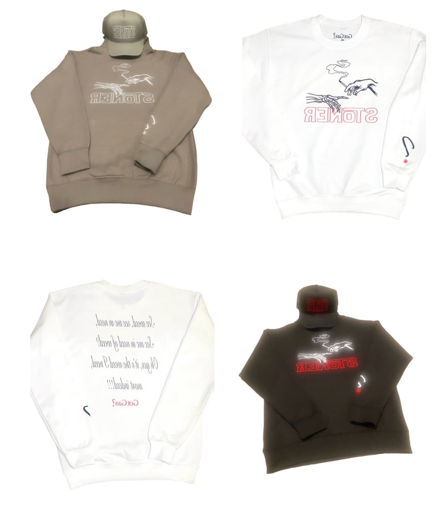 420 collection consists of (2) crew neck tees, & (1) trucker hat